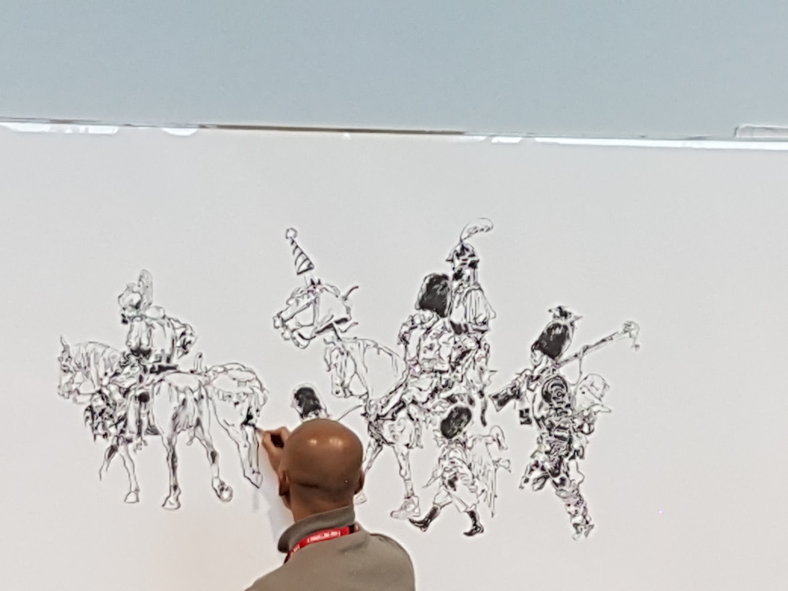 Watching Kim Jung Gi was a treat, transforming a huge blank canvas into a an amazingly detailed picture before a crowd of onlookers. How he manages to do these pictures, without reference and planning will always amaze me.